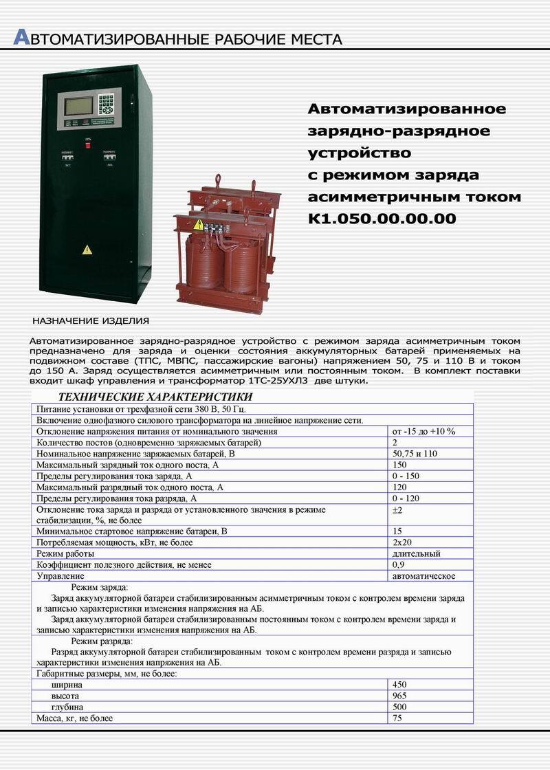 - Номинальное напряжение заряжаемых батарей, В — 50, 75 и 110